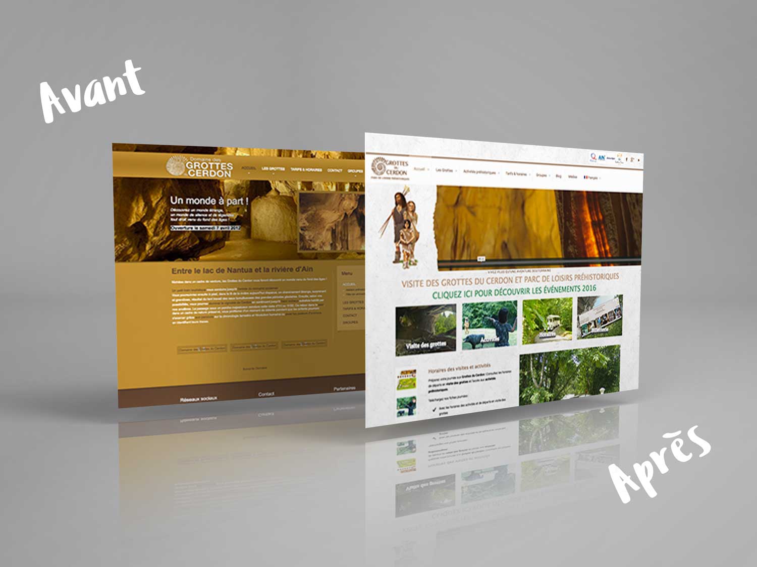 Le précédent site des Grottes du Cerdon était vieillissant, terne, n’engageait pas le consommateur et ne présentait pas grand chose du site et des activités.